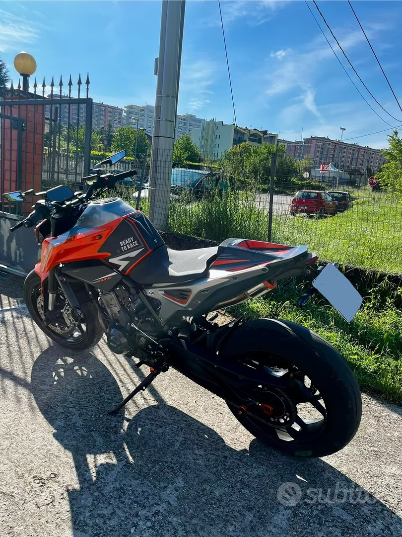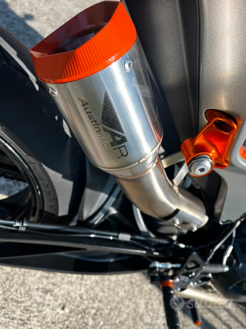 Disponibili anche tutte le parti originali, si fornisce kit bitubo con molle e kit sospensione nuovo, pneumatici Pirelli Diablo supercorsa NUOVI da montare, kit pignone catena corona appena sostituiti, kit monoposto installato (disponibile kit biposto originale), grafiche KTM antiscivolo, pastiglie freno nuove, specchietti, frecce led sportive.