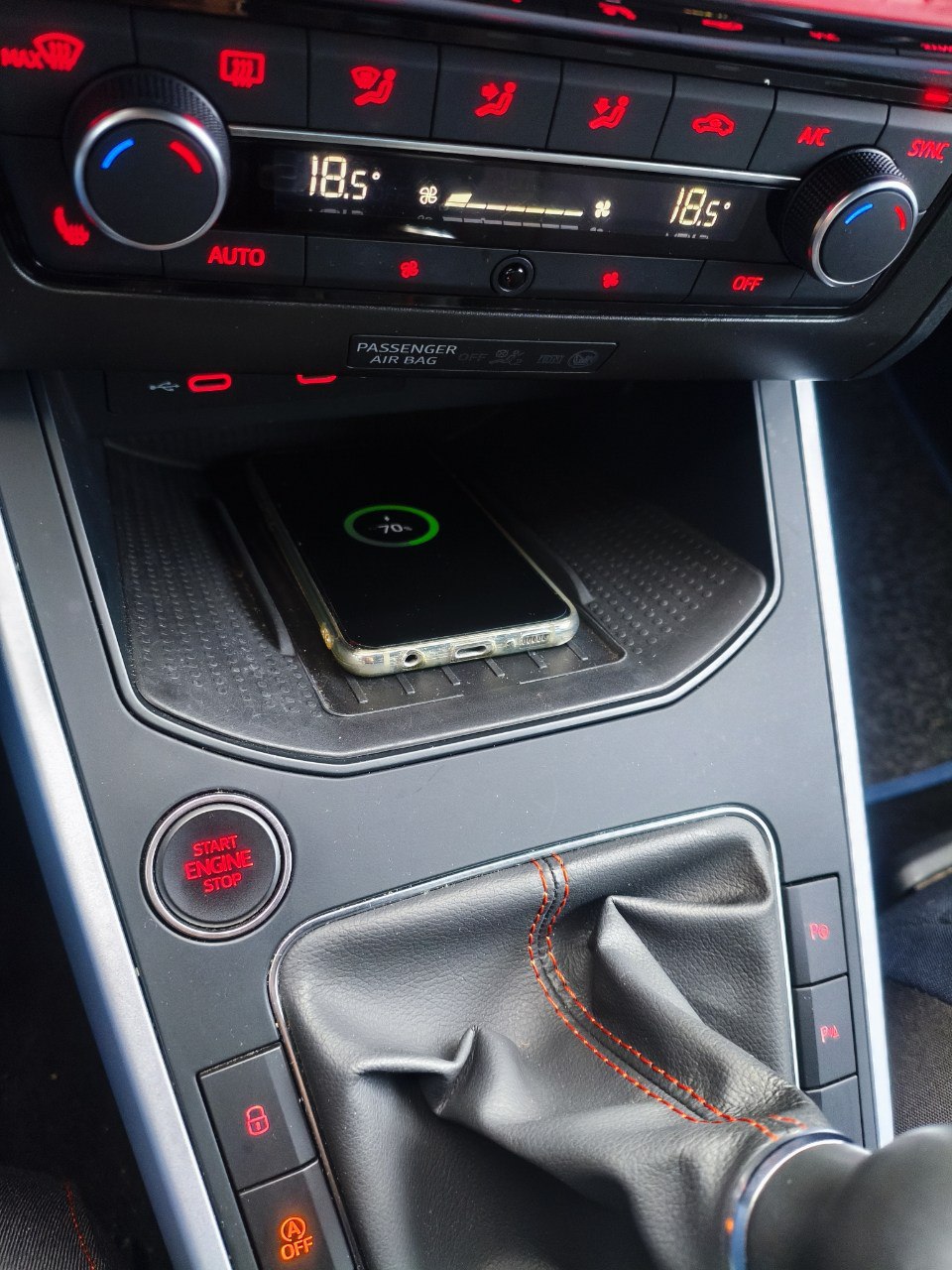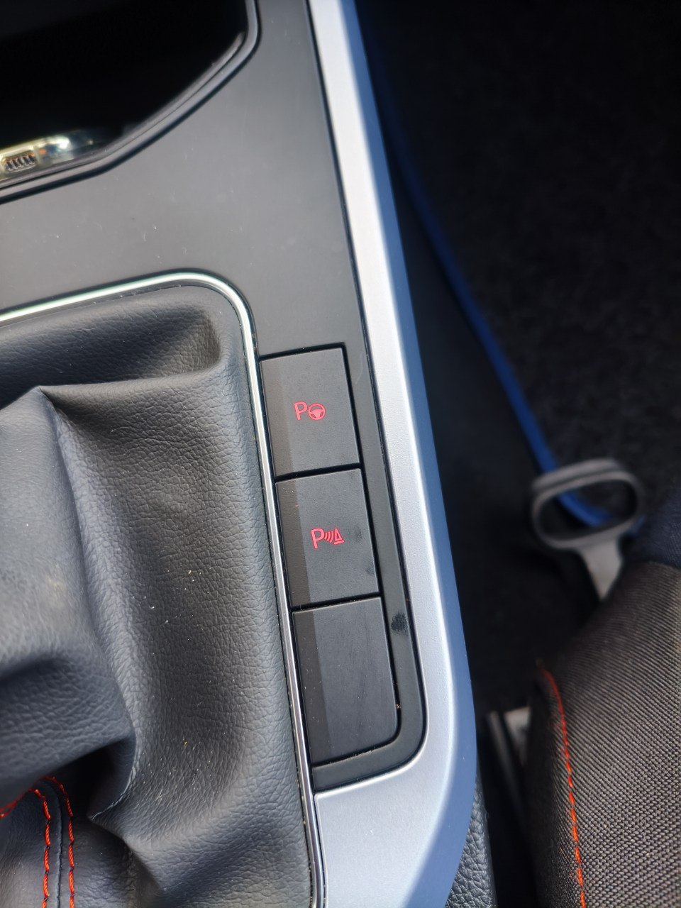 – Pomello leva/selettore cambio pelle sportiva con cuciture rosse